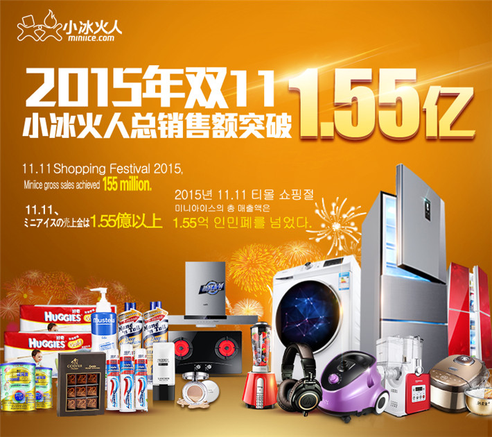 截至11月11日23时59分59秒,一年一度的双11狂欢节正式结束。广东小冰火人网络科技股份有限公司(以下简称“小冰火人”)2015年双11全天总网上交易额达15536万元,其中开卖15小时已打破去年双11全天销售额1亿元的纪录!