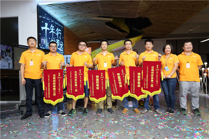 双11结束后,小冰火人举行了庆功会。庆功会上宣布了任务完成率和销售额前三名获奖团队,并由彭利民董事长与COO原媛女士为获奖团队颁发锦旗。