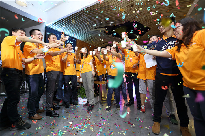颁奖结束后,获奖团队代表开启香槟庆祝并与各事业部负责人一起举杯庆祝,为小冰火人2015年双11画下完美句点!