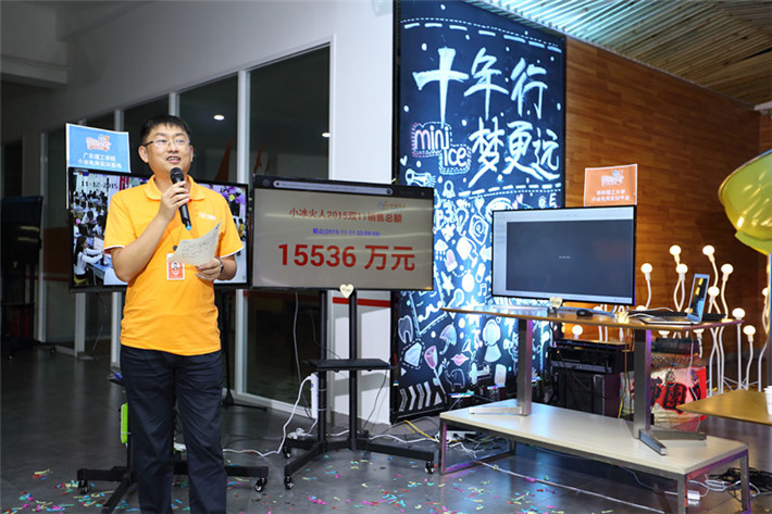 15536万元!小冰火人2015年双11销售总额最终定格于屏幕显示的数字,现场600多名员工一同为此欢呼,兴奋不已。