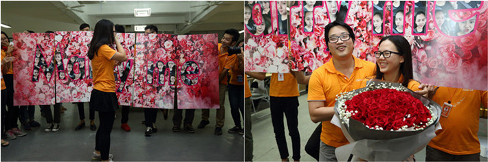 第一场求婚主角是阿拉丁设计部负责人豪哥,在双11前高强度的工作之下,十分忙碌的豪哥用仅有的休息时间为设计师阿虾制作了特别的惊喜!