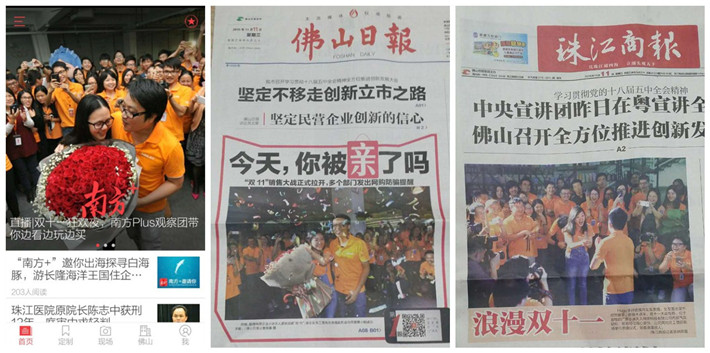 这两场求婚也得到了小冰火人高管们的一致支持,同时在双11当天也得到南方日报手机客户端、珠江商报、佛山日报等各界媒体的头条报道!