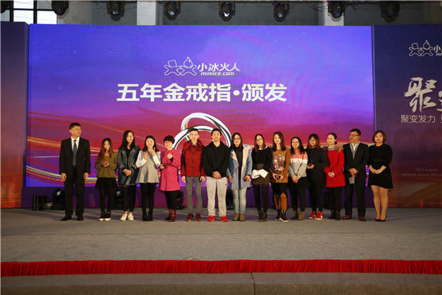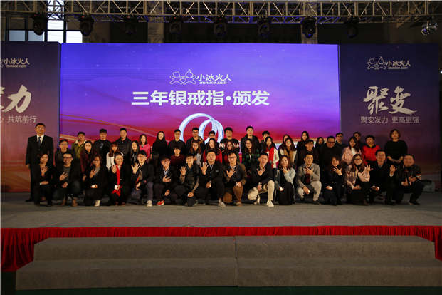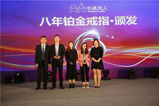 此外,本次年会表彰环节中,小冰火人集团CEO彭利民先生与COO原媛女士一同上台为在小冰火人工作满三年、五年、八年员工分别颁发银戒指、金戒指、铂金戒指作纪念,以此感谢他们见证与陪伴小冰火火人一路成长。