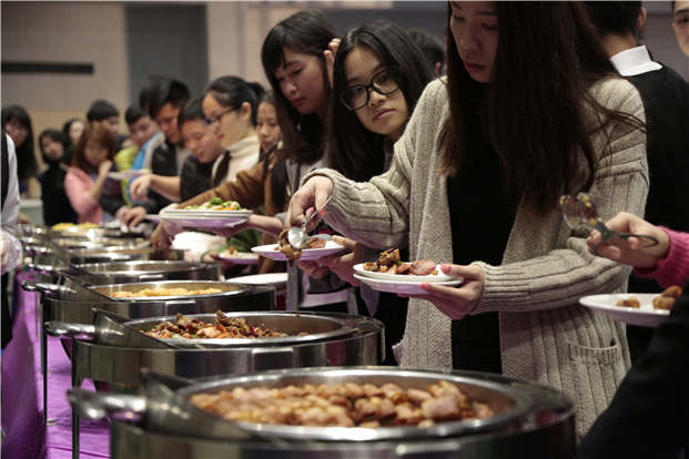 (图为员工们自助享用美食)