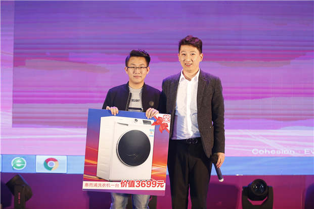 (图为获得惠而浦千元洗衣机的幸运员工)