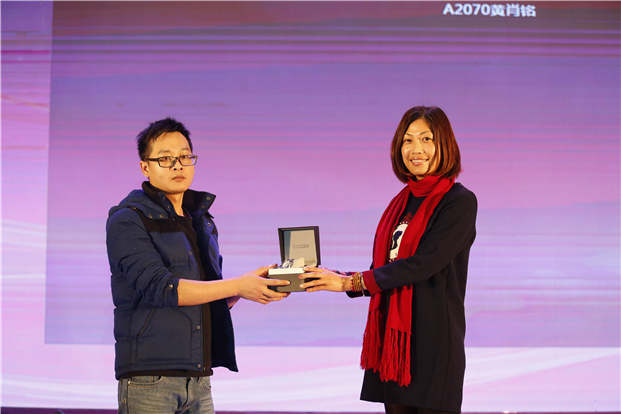 (图为集团CEO彭利民先生为歌唱比赛投票胜出的前三甲颁奖)