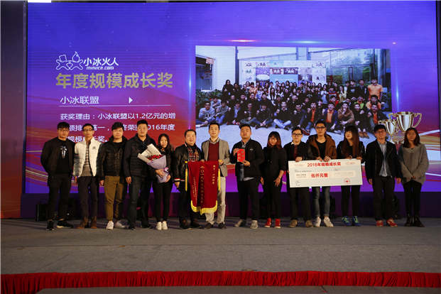 (图为年度规模成长奖获奖者:小冰联盟合影)